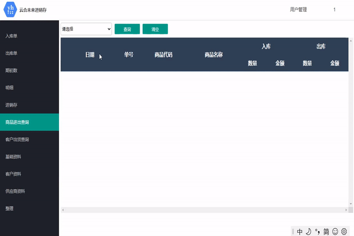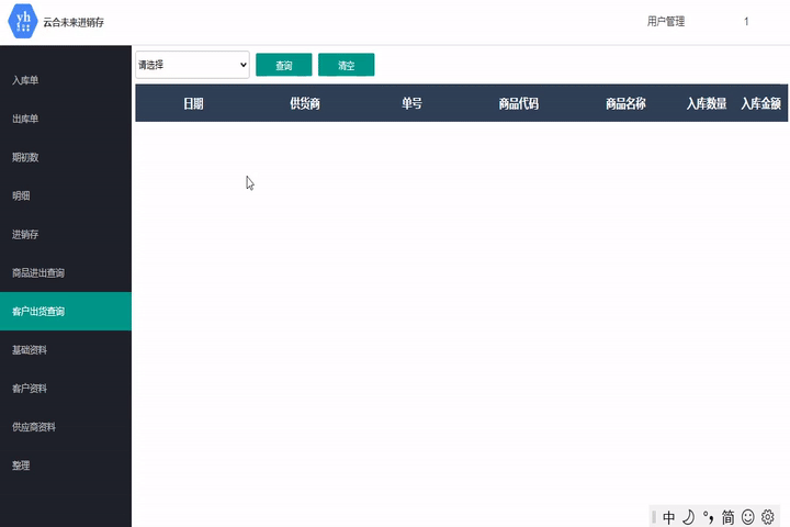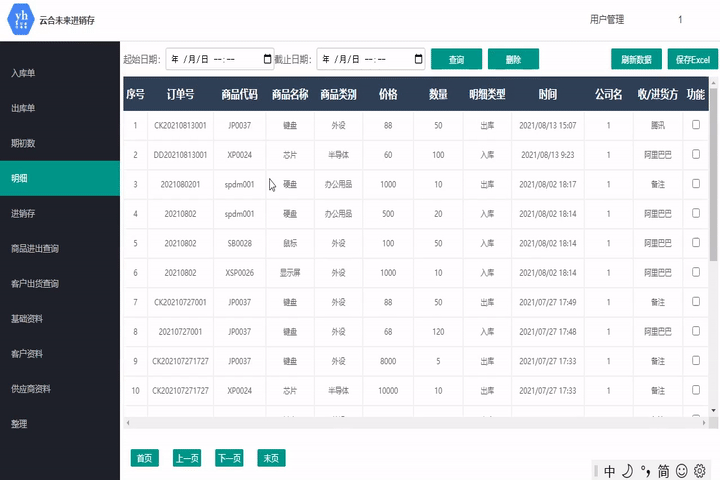 此模塊記錄所有入庫、出庫信息,方便用戶管理。可按照日期進行查詢。