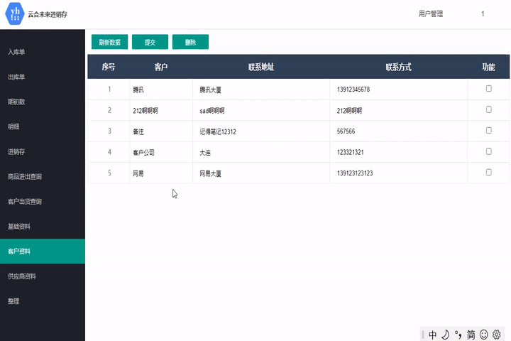 此模塊用于錄入入庫信息,可根據商品名稱或商品代碼搜索當前庫存中的物品。