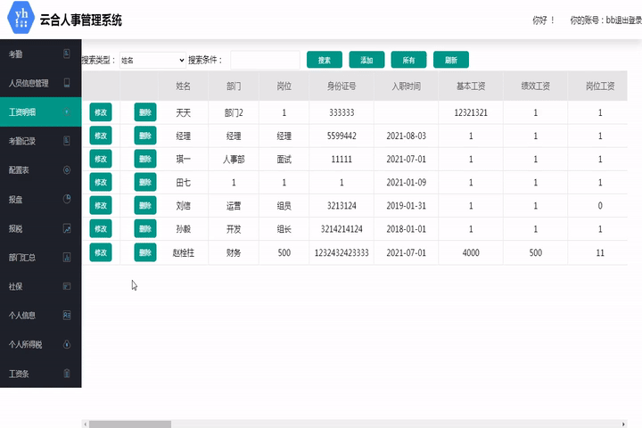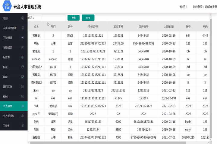 此模塊用于查看此系統下所有員工的個人信息,可以根據姓名查詢。